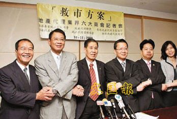 六大地產(chǎn)代理商會(huì)(香港專業(yè)地產(chǎn)顧問商會(huì)、地產(chǎn)代理聯(lián)會(huì)、香港地產(chǎn)代理專業(yè)協(xié)會(huì)、香港地產(chǎn)代理商總會(huì)、地產(chǎn)代理管理協(xié)會(huì)、新界地產(chǎn)代理商會(huì)),10日舉行記者會(huì)公布該會(huì)提出的六項(xiàng)“救市方案”。祥益地產(chǎn)總裁、香港專業(yè)地產(chǎn)顧問商會(huì)會(huì)長汪敦敬稱,近期銀行明顯收緊借貸限制,幾乎三個(gè)想買樓的買家,只有一個(gè)能夠成功取得銀行貸款,情況“很不正!。