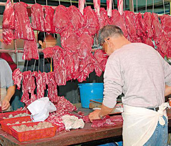 業(yè)界人士透露,市面有超過70%肉檔將冷藏肉充新鮮牛肉出售,因為以現(xiàn)時的牛肉供應量,根本不足應付需要。他稱,牛肉市場被五豐行壟斷,供應量由去年的120只驟減至現(xiàn)時每日約70多只,令牛肉出現(xiàn)供不應求情況,以至市面充斥冒牌新鮮牛肉。