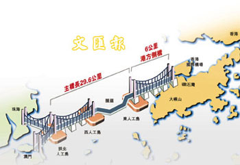 其中包括:大橋工程可行性研究已經(jīng)完成,將于下月由廣東省政府上報中央批準。為了加快進度,在等待報批的同時,三地政府于12月1日啟動主體工程的初步設(shè)計招標,預(yù)計明年4月可以啟動初步設(shè)計,并力爭在2009年動工;同時決定成立大橋管理局負責(zé)招標、融資及設(shè)計等具體工作。