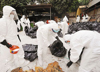 漁護(hù)署、衛(wèi)生署與食環(huán)署9日下午舉行禽流感督導(dǎo)委員會會議,香港食物及衛(wèi)生局局長周一岳會后會見記者時稱,因應(yīng)在香港農(nóng)場發(fā)現(xiàn)禽流感病毒,決定把香港禽流感的戒備應(yīng)變級別提升至嚴(yán)重級別,并把肇事雞場列為疫點(diǎn),雞場方圓3公里范圍內(nèi)列為疫區(qū),須銷毀疫區(qū)內(nèi)所有雞只,涉及2個雞場共8萬只活雞。