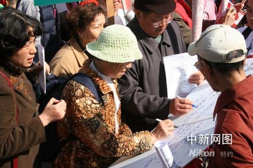 華人華僑現(xiàn)場簽名支持北京奧運會。中新社記者呂振亞攝