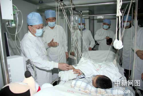 中新網(wǎng)廣州七月二日電 (記者 郭軍)中國國務(wù)院僑辦副主任馬儒沛今天來到廣州暨南大學(xué),看望正在這里接受治療的四川地震災(zāi)區(qū)重傷員——岳強。他同時勉勵暨南大學(xué)華僑醫(yī)院醫(yī)護人員繼續(xù)發(fā)揮抗震救災(zāi)的精神,努力將地震傷員救治好。