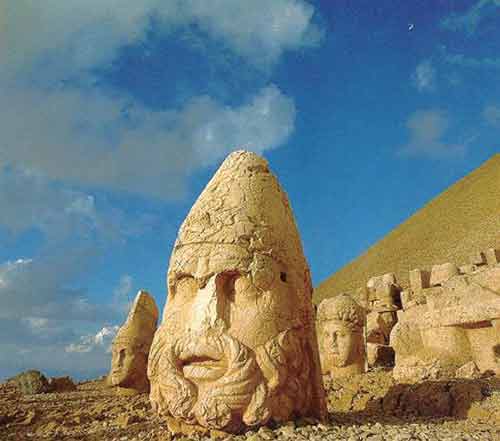 人像山是我自己編的名字,它的音譯應(yīng)該為內(nèi)姆魯特山。有些臺(tái)灣旅游書上把它叫作人頭山,聽著很是恐怖。雕像佇立在海拔2150米高的內(nèi)姆魯特山頂,這里其實(shí)是科瑪吉內(nèi)的國(guó)王安提俄克斯一世的陵墓。在這個(gè)英俊的國(guó)王的陵墓前面,列著他喜愛的神明雕像,他自己的雕像也擠身其中。我想,他是希望自己死后能入“仙班”,或者說,他本就是神……
