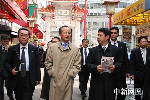 中國(guó)駐日本大使崔天凱(左二)訪問神戶中華街南京町。