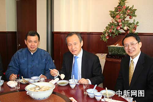 崔天凱大使接著來到中華街上的老字號(hào)東榮酒家,和神戶華僑總會(huì)會(huì)長(zhǎng)鮑悅初、株式會(huì)社東榮商行代表王銳輝等當(dāng)?shù)厝A僑代表一邊吃餃子一邊交談,了解餃子事件的各種負(fù)面影響。