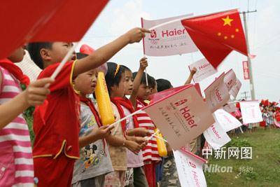邵陽(yáng)縣黃亭三聯(lián)小學(xué)的教學(xué)條件很差,甚至連塊像樣的操場(chǎng)都沒(méi)有,教室前面就是一片莊稼地,所以拔河也許是他們唯一能開(kāi)展的大型體育活動(dòng)了。為了慶祝奧運(yùn),迎接即將建好的新學(xué)校,老師組織孩子們舉行了一個(gè)別樣的“運(yùn)動(dòng)會(huì)”,而拔河則是其中最隆重的項(xiàng)目。熾熱的陽(yáng)光下,小運(yùn)動(dòng)員們赤腳上陣,幸福的汗珠在臉上流淌;兩邊的啦啦隊(duì)也不甘落后,大家手中揮舞著海爾贈(zèng)送的國(guó)旗,吶喊的時(shí)候似乎比場(chǎng)上的小選手還賣力。