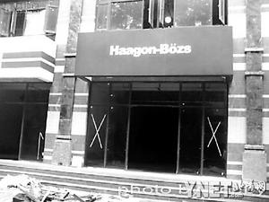 原來,這些商鋪的招牌乍一看是大牌,可再仔細(xì)看看,不對啊,怎么全部是山寨版?真是大跌眼鏡!從東往西第一家是大名鼎鼎的運(yùn)動品牌李寧,“錯了!這個叫李明LI-MING!钡诙沂切≠Y最愛的星巴克STARBUCKS,“又錯了,這個叫BUCKSSTAR”。其他的大牌也如法炮制,必勝客成了“必勝糊”,哈根達(dá)斯成了“哈根波斯”,包括屈臣氏、seven-eleven等名牌都被惡搞了一把。最令人叫絕的是,麥當(dāng)勞的經(jīng)典m形標(biāo)志,被多加了一個彎,成了“3扇門”。記者看到,這些掛了招牌的商鋪并沒有一家正式開張。