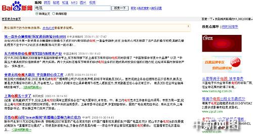 而百度則將通過聚合各家新聞機(jī)構(gòu)的內(nèi)容獲得的流量轉(zhuǎn)化成了自己的廣告價值。在百度新聞搜索中搜索“電視”后,除了各家新聞網(wǎng)站關(guān)于電視的相關(guān)新聞外,還會在頁面右側(cè)看到多家電視廠商的廣告(下圖)。而通過這些廣告獲得的收入,百度顯然不會與提供內(nèi)容的新聞單位分成。