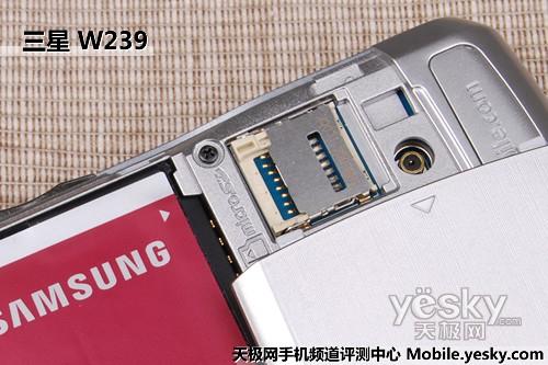三星W239在機身左側(cè)設(shè)計了音量控制鍵,按鍵凸起明顯,便于在不方便拿起手機的情況下,控制音量。