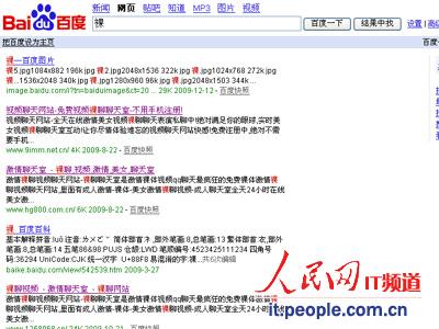 12月13日,中央電視臺《朝聞天下》欄目播出了百度少兒搜索存在黃色內(nèi)容的消息。報道稱,在百度測試了三年的少兒搜索引擎中,輸入"聊天"、"激情"等詞語后,搜索結果竟然是大量黃色網(wǎng)站的鏈接。隨后,人民網(wǎng)記者試圖打開這個網(wǎng)頁,但是已經(jīng)被百度公司屏蔽了,只有一些少兒網(wǎng)站的地址。不過,在百度普通的搜索頁面中,敏感信息仍然沒有被有效屏蔽,黃色淫穢的結果很輕松就能被搜索出來。