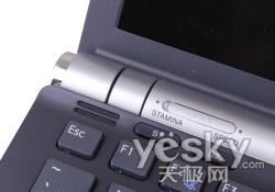 轉(zhuǎn)軸部分有一個STAMINA和SPEED模式切換鍵,這個切換鍵是專門針對這款機(jī)器獨特配置所設(shè)計的,由于Z55配備了雙顯卡,并且NVIDIA與IntelX4500并不支持熱切換,為了在省電和性能之間方便切換,索尼Z55加入了這個按鍵,在“持久(STAMINA)模式”中,它使用的是集成顯卡(移動式英特爾®圖形媒體加速器 4500MHD)。而在“(SPEED)模式”中,VAIO Z5系列使用的是獨立顯卡(NVIDIA GeForce 9300M GS (GPU) 顯卡,用戶可根據(jù)實際需求,在使用中做不同模式切換。