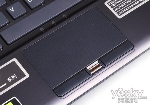 觸摸板區(qū)域設(shè)計寬大,表面附了一層采用了磨砂處理的塑料材質(zhì),同時為了增加手感表面還加了一些微小凸點的膜。左右按鍵被設(shè)計成狹長的外形,用手按下去的觸感非常好,彈性好并且省力。雖然還是不如一些商務(wù)本的指點桿操控,不過對于一些初級用戶來說,還是觸摸板更容易使用。另外,左右按鍵中加入了指紋識別器,對于一些比較注重安全的商務(wù)用戶來說還是非常有必要的。