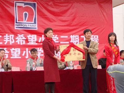 立邦(中國)有限公司再度讓一所希望小學(xué)注入彩色的夢想。2008年10月20日,立邦公司在山西捐建的一所希望小學(xué)二期彩色希望小學(xué)工程竣工。上午九點,在雄壯的國歌聲中,立邦太谷希望小學(xué)二期工程暨彩色希望小學(xué)落成儀式正式開始。立邦公司領(lǐng)導(dǎo)同太谷縣副縣長、太谷教育局局長及河?xùn)|鄉(xiāng)書記、希望辦的領(lǐng)導(dǎo)一起,為其揭牌并參加當天舉行的立邦捐贈儀式,并參觀校園文化藝術(shù)節(jié)作品、觀看師生表演。