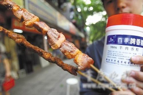 豬肉串里添加了香精,味道頓時變成了羊肉味。 記者 陸綱 攝