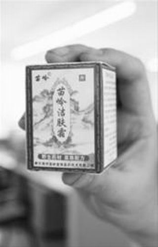 記者拿起一盒苗嶺潔膚霜,看到包裝盒上印著“苗族瑰寶、草藥奇珍”的字樣。苗嶺潔膚霜的產(chǎn)品介紹中說:“本產(chǎn)品由黔東南州苗嶺苗族醫(yī)藥技術(shù)有限公司根據(jù)千百年來苗族傳統(tǒng)配方專業(yè)研制,采用純天然野生苗族藥材,以傳統(tǒng)工藝炮制,運用現(xiàn)代科技方法精制而成。 ”說明書標(biāo)注的主要成分是“五倍子、拳參、皂角刺等25味純天然野生藥材”。