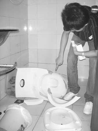 小伙說,和女友開好房間不久,他到衛(wèi)生間方便,剛坐上馬桶,意外出現了,“馬桶突然翻倒破碎,我身體也隨之失去控制,在本能的作用下,我左手迅速向后一按,結果屁股沒受傷,手卻被馬桶碎片劃得鮮血直流!碑斖,小伙從醫(yī)院看傷回來,拿著病歷找到大明路崢嶸招待所老板索賠。“是你使用不當造成的,為什么別的房間馬桶沒壞?這醫(yī)藥費我們不賠!薄澳氵@馬桶一定有問題,要不怎么會不結實?”雙方爭執(zhí)不休,小伙一氣之下?lián)艽?10。