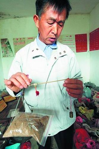推開二樓的一間屋子,一股霉味撲鼻而來(lái),地上擺放著數(shù)百個(gè)裝有各類中草藥材的塑料袋和壇壇罐罐!斑@些藥材中99%是植物類藥品,也有少數(shù)動(dòng)物類和礦物類藥材,有些是我從邵東等地采購(gòu)來(lái)的,有些是我上山采來(lái)的!毙軐W(xué)賢拿出幾包已包裝好的粉末狀藥品告訴記者,這些是他研究出來(lái)的藥品,分別命名為“惡性腫瘤1號(hào)內(nèi)服藥”、“惡性腫瘤2號(hào)外敷藥”、“艾滋病攻克劑”等。記者看到,這些藥品的外包裝上無(wú)任何部門的批文,僅有一張打印的“說(shuō)明書”。熊學(xué)賢說(shuō),他的這些藥品很有效果,已治好了多位患艾滋病和癌癥的病人。