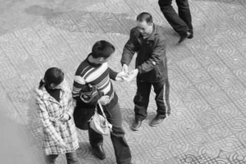 商家正在大學(xué)宿舍樓下向?qū)W生派發(fā)避孕套 記者 吳小川 攝