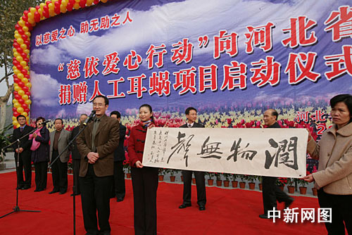 中新網(wǎng)11月10日電 11月10日,由海外愛心人士和畫家張和勇發(fā)起的 “慈依愛心行動”, 向河北省貧困聾兒捐贈人工耳蝸儀式在石家莊舉行,此次受助的10名重度耳聾的聾兒分別來自全省8個地市的貧困家庭,每名聾兒獲贈一套價值16.8萬元人民幣的澳大利亞人工耳蝸,本月將在北京陸續(xù)接受植入手術。據(jù)悉,此次捐贈是境內(nèi)目前規(guī)模最大的一次向貧困聾兒捐贈人工耳蝸的慈善活動。