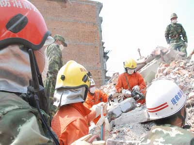 中新網(wǎng)5月19日電 據(jù)中國(guó)消防在線消息,5月19日,云南消防總隊(duì)赴漢旺救災(zāi)隊(duì)伍在四川省綿竹市漢旺鎮(zhèn)天河街22號(hào)天池礦業(yè)公司家屬樓救援時(shí),從16棟一單元倒塌的廢墟中成功解救出一名50多歲的女性幸存者。