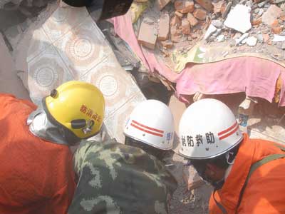 10時(shí)25分,消防官兵在對(duì)漢旺鎮(zhèn)災(zāi)區(qū)天池礦業(yè)公司家屬樓進(jìn)行搜索救援時(shí),突然聽到廢墟中傳來(lái)一陣微弱的呼救聲。還有幸存者!馬上進(jìn)行救援!全力挽救幸存者的生命!隨著現(xiàn)場(chǎng)指揮員的一聲令下,參戰(zhàn)消防官兵在指揮員的嚴(yán)密組織下科學(xué)施救,充分發(fā)揮消防部隊(duì)的裝備優(yōu)勢(shì)和救援經(jīng)驗(yàn),迅速使用液壓剪、切割機(jī)迅速清除幸存者上方的鋼筋、鐵條等物,搬除身上埋壓的石板、水泥塊,為幸存者開辟救生通道。