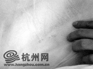 如果沒發(fā)現(xiàn)水銀,這張床帶給鄭慧一家的還是甜美的夢?7月16日晚兒子一泡尿,尿濕了床上的靠包,一家人的美夢從此變成了噩夢。7月17日早晨,鄭慧把靠包拆下來洗,發(fā)現(xiàn)內(nèi)芯有一粒一粒的水銀。她很震驚,也很害怕,立即通知了經(jīng)銷商。經(jīng)銷商當天過來把內(nèi)芯拆開,發(fā)現(xiàn)填充物里布滿了水銀,馬上聯(lián)系了廣東的廠家。