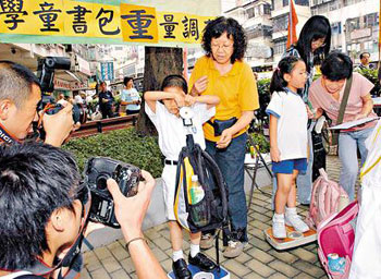 香港學(xué)童書包超重嚴重,雖然醫(yī)學(xué)界建議書包重量不超過體重10%,但早前民建聯(lián) 一項調(diào)查顯示,香港學(xué)童書包重量平均達3.9公斤,最重更達7公斤,其中有一年級學(xué)童書包超重最為嚴重,平均比標準重量高出近49%。