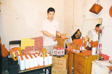 辦案民警告訴記者,從去年初開(kāi)始,來(lái)自河南信陽(yáng)的袁某就和老鄉(xiāng)余某在一起制假販假,之后又雇姚某送貨。袁的父母拿收廢品當(dāng)幌子掩飾兒子制假販假,同時(shí)還可獲取一些廢舊酒瓶和包裝。他們買來(lái)廉價(jià)白酒后,加水勾兌成“茅臺(tái)”、“五糧液”等假名酒。每瓶假酒的成本不到10元。之后將這些假酒以每瓶50元至100元的價(jià)格,賣給西安的一些煙酒店。