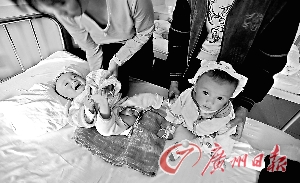 兩個“腎結(jié)石”寶寶正在醫(yī)院接受治療。