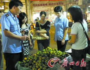 工商人員到現(xiàn)場(chǎng)了解“問(wèn)題柑橘”。