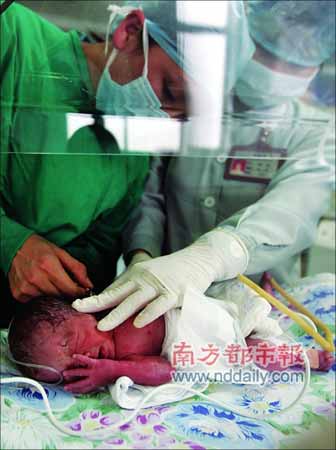 16:30,四個(gè)新生命被送至新生兒監(jiān)護(hù)室。“現(xiàn)在情況還算穩(wěn)定,但老四有點(diǎn)窒息,這些小家伙要過兩三天之后才能穩(wěn)定下來!毙律鷥嚎浦魅伪R慶暉說。