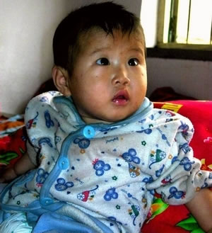 10月21日,記者冒雨與衡水復(fù)明眼科醫(yī)院的醫(yī)護(hù)人員一行來(lái)到了故城縣武官寨鎮(zhèn)叩莊村,小田盈的爺爺、奶奶早就等在門(mén)口了。小田盈在爸爸的懷里起勁地吮吸著奶瓶。記者看到田盈的上嘴唇左部一直到左鼻孔有一道長(zhǎng)長(zhǎng)的疤痕。右前臂明顯彎曲,摸上去有硬塊。俗話(huà)說(shuō)“三翻六坐八爬爬”,目前小田盈都9個(gè)半月了,別說(shuō)爬了,連坐都坐不起來(lái)。
