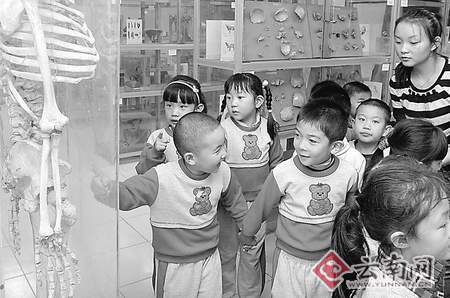 “這是什么骨頭?”昨日,在昆明醫(yī)學(xué)院人體解剖學(xué)標(biāo)本陳列室里,面對浸泡在福爾馬林中的人體器官,云南師范大學(xué)幼兒園250多名孩子提出各種各樣的問題。作為“生命、生存、生活”教育的內(nèi)容之一,云師大幼兒園希望能通過此次參觀讓孩子們更直觀地認(rèn)識自己的身體,樹立正確的觀念。此舉得到部分家長的支持,卻受到部分心理學(xué)家的反對。