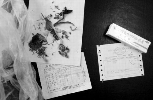“半個月是一個療程,藥費為1000元左右!”段醫(yī)生說!拔覜]帶那么多錢,只有500元!”曉露母親答!斑@樣吧,先開一個星期的,7服藥,488元!”段醫(yī)生說。