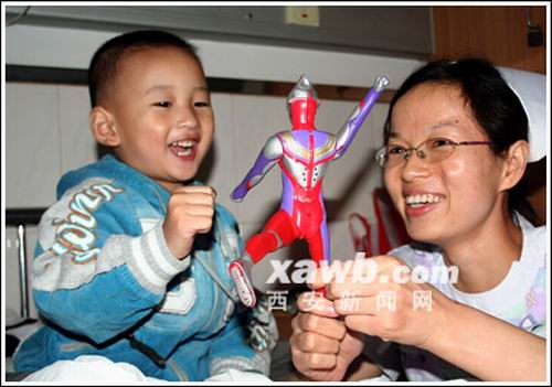 9月26日早上6時,小郎錚在父母陪同下由綿陽到達(dá)西安。剛下火車時,小家伙顯得異常興奮,與前來迎接的唐都醫(yī)院工作人員熱情擁抱。到達(dá)醫(yī)院后,醫(yī)護(hù)人員以最快速度為郎錚進(jìn)行了X光片、心電圖、肝功、腎功等常規(guī)項目檢查。