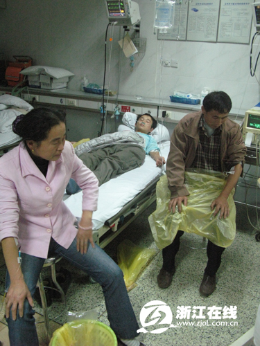 帶老鄉(xiāng)來杭州打工的余某正躺在病床上,鼻子上插著導(dǎo)管,正在配合衛(wèi)生監(jiān)督部門的調(diào)查。余某說,他已經(jīng)向工地的老板說明了情況,推遲幾天開工。