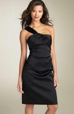 單肩——不對(duì)稱(chēng)的美麗!配上胸部輕描淡寫(xiě)般的皺褶,無(wú)需更多修飾就很完美的一條小黑裙,但不適合肩膀?qū)挼呐恕?/p>