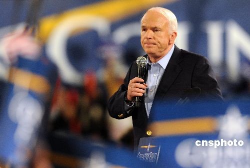 十一月三日午夜,美國(guó)總統(tǒng)大選進(jìn)入沖刺階段,共和黨總統(tǒng)競(jìng)選人麥凱恩經(jīng)過(guò)連日奔波后終于回到“家鄉(xiāng)”,在亞利桑那州普雷斯科特市參加選前最后一場(chǎng)造勢(shì)大會(huì)。充滿感性的造勢(shì)大會(huì)吸引了近萬(wàn)名支持者, 麥凱恩告訴父老鄉(xiāng)親:“明天,我們將顛覆令人不快的傳統(tǒng)(指亞利桑那州還沒(méi)有走出一位美國(guó)總統(tǒng)),我將成為美國(guó)總統(tǒng)!”