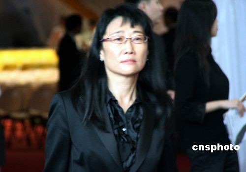 圖為王雪紅在告別儀式結(jié)束后正離開靈堂。中新社發(fā) 黃少華 攝