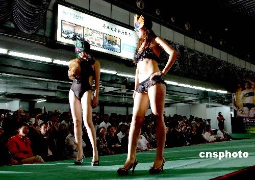圖為模特表演香港夢(mèng)漣娜情趣內(nèi)衣。