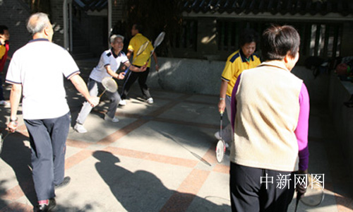 社區(qū)老人們自己發(fā)明的“花式羽毛球”讓記者們嘆為觀止