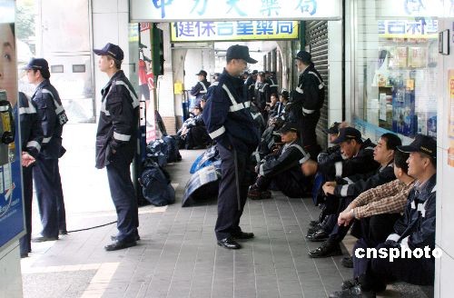 圖為特偵組附近每一條街道都有大批警力分層戒備,包括騎樓下也有警察在等候應(yīng)對異常情況。中新社發(fā) 黃少華 攝