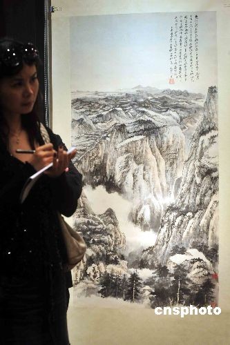 圖為預(yù)料成交價(jià)超過一百五十萬港元的張大千名作《峨眉攬勝》。