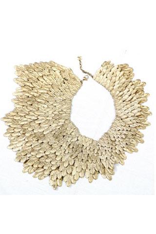 香奈兒專屬羽飾Desrues工坊似乎能把所有的不可能變?yōu)榭赡埽拖裰袊糯哪芄で山衬馨腰S金做成葉脈清晰的樹葉一樣,他們用黃金打造出了羽毛質(zhì)感清晰的頸飾并依照大小層層排列,在塑造肌理質(zhì)感的同時讓其栩栩如生起來。