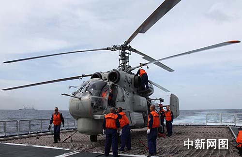 中新網(wǎng)“?凇迸12月28日電(記者 孫自法)12月28日,中國海軍遠洋護航艦艇編隊在南中國海航行!昂?凇碧枌楎屩鹋炁炤d直升機進行飛行訓練準備。