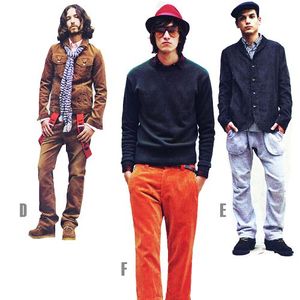 應(yīng)該是這六套著裝中比較靚的一組,風(fēng)格很像那個韓國明星RAIN一樣。紅色調(diào)皮的禮帽下身桔黃色絨面長褲,雖然毛衫簡單,但是其總體感覺很韓國?磥眄n流的余波未盡啊。 其實并不一定要添置新的衣服,你只要好好的整合你的衣柜,一定能組合出自己的一種風(fēng)格,最重要的是要適合自己。