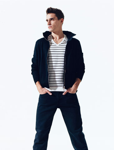 二:做舊的黑色?肯定!Marky Ramone 可能更喜歡他的黑色牛仔褲,但時(shí),如果你穿著一件運(yùn)動(dòng)背心外套,或者休閑毛衣的話,仔褲最好也要具有同樣的優(yōu)雅質(zhì)地才可以。我們建議你選擇一跳炭灰黑色的略有褪色的仿舊效果仔褲,然后白色T恤,加上運(yùn)動(dòng)鞋,就可以了。