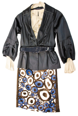 另類單西:本季中,設計師把將以往單西中鋒芒外露的反駁領換成角度柔順的長劍領,寬肩的設計演變成兩個極端剪裁,要么特意加長了下擺變成長外套,要么改短收身變成短夾克;前襟扣也不是單扣或雙扣一統(tǒng)天下,而是與雙排扣平分秋色;顏色也不再是黑、灰、白色,傳統(tǒng)的米色調也被糅合進了銀灰和淡淡的粉色成分,沒有了硬挺的線條,取而代之的是更加女人味的款式設計。