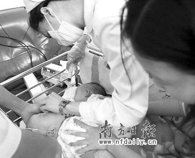 當(dāng)天下午4時許,醫(yī)院方面對連體嬰兒進(jìn)行術(shù)后大會診。醫(yī)院有關(guān)負(fù)責(zé)人說,從現(xiàn)在起10多天都是危險期,半個月內(nèi)姐妹倆都有風(fēng)險,希望有關(guān)人員把可能的情況都要想到,及早做好預(yù)防。