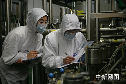就近期而言,雅士利的工作重心是不斷提高質(zhì)量檢測的水平和力度。首先,原料奶進(jìn)廠必須經(jīng)過四道檢查——奶農(nóng)、奶販兩個環(huán)節(jié),由當(dāng)?shù)卣畽z查;進(jìn)廠前,接受第三次檢查,主要檢測其蛋白質(zhì)、脂肪、干物質(zhì)含量和三聚氰胺、酸度、雜質(zhì)等,如沒問題則輸送到原奶倉,經(jīng)凈乳、殺菌后再輸送到巴氏奶倉;噴粉前,第四次檢測,再次檢測蛋白質(zhì)、脂肪、干物質(zhì)含量和三聚氰胺,確保檢測合格后再添加配料、濃縮、噴粉。也就是說,在生產(chǎn)源頭就須過“四道關(guān)”。